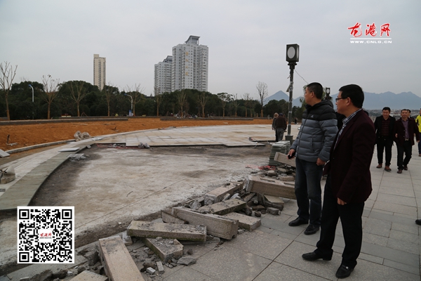 在督查期间,丁振俊要求施工单位要严格按照设计标准要求,在严把工程质量关的同时,要加大工作力度,加快工程进度,全力推进沿江休闲绿化带改造提升工程建设。各相关部门要采取切实有效措施,对沿线违章建筑进行全面拆除,进一步推进外滩堤塘沿线环境综合整治工作,更好地确保沿江休闲绿化带改造提升工程按时完成建设任务。
