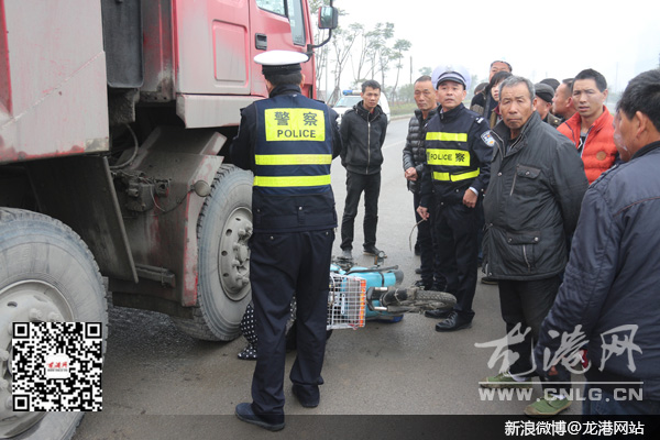 龙港网12月21日简讯:今天上午9点左右,在龙港镇世纪大道与东城路交叉路口发生了一起交通事故,造成了一男子当场死亡。据了解,当时一辆重型工程车与 辆电瓶车相撞,电瓶车主当场被撞身亡。目前,公安人员已经介入调查,事故勘测取证查验结果还没有出来,事故发生的具体原因还在进一步调查中。