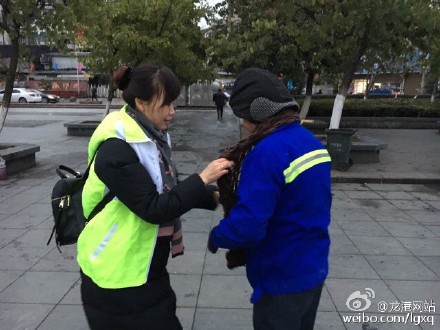 [导读]今天早上6点钟,苍南县仁爱志愿者服务中心志愿者冒着严寒冷风在龙港金河广场开展给环卫工人“暧冬”活动,,为20余名在广场上打扫垃圾环卫工人送上爱心围巾、袜子、保暖套,为环卫工人送上我们的祝福与温暖!感恩志愿者的付出!