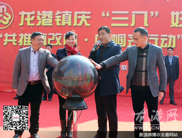 最后,陈军苹、上官光强、吕存阳、黄义耀等领导一同上前按响启动球,宣布“共推镇改市•巾帼齐行动”主题系列活动全面启动,开创龙港镇妇女事业新局面。