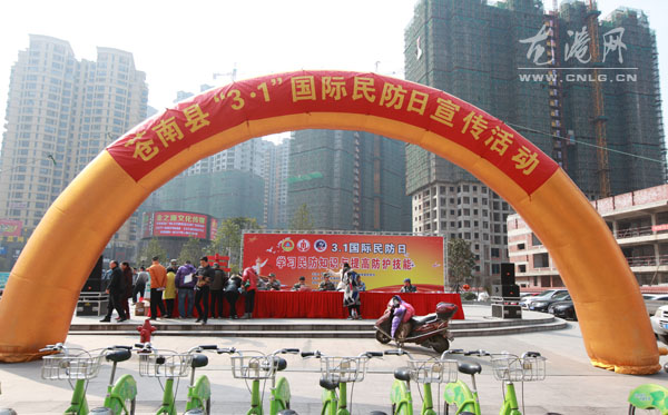 龙港网3月2日讯:3月1日上午,天气晴朗,苍南县龙港镇财富广场热闹非凡,这里正在举行苍南县 “3•1国际民防日”宣传活动。