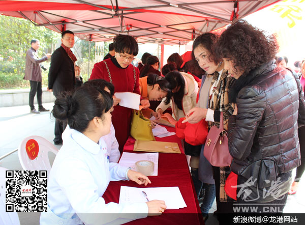 龙港网3月3日讯:为纪念“三八”国际妇女节的即将到来,昨天下午,龙港镇妇联在财富广场上设点摆摊,组织开展了“三八”妇女维权周宣传活动和女性免费健康普查活动,让女性更好地掌握健康知识,提高维护自身权益的自觉性。