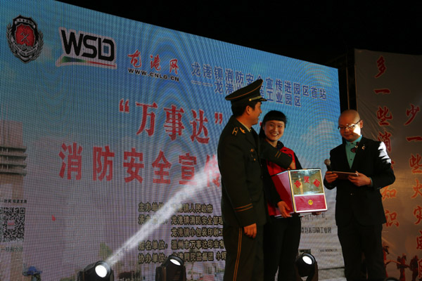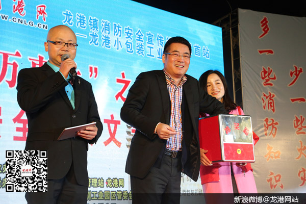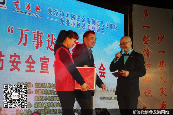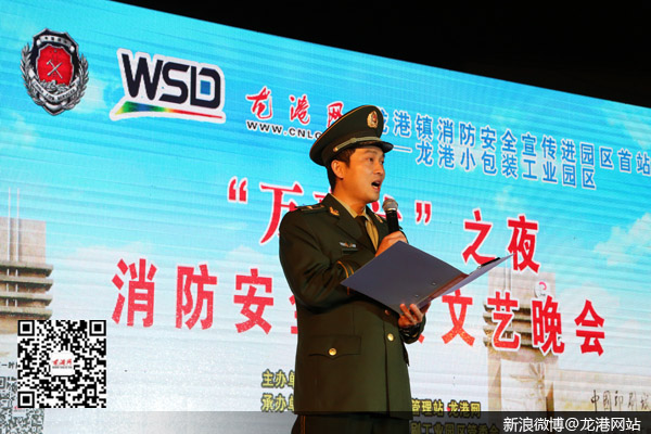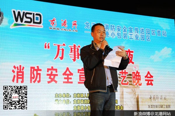 龙港网3月20日讯:昨天晚上,“万事达”之夜“关注安全、珍爱生命” 消防安全宣传文艺晚会在龙港小包装工业园区隆重举办,这标志着2016龙港镇消防安全宣传活动全面启动。本次晚会由龙港镇人民政府主办,龙港镇消防安全管理站、龙港网、龙港镇小包装印刷工业园区管委会承办,温州万事达印业有限公司冠名,龙港网民监督团、小辉音乐工作室协办,苍南县公安消防局政委黄崇立,龙港镇委副书记、镇长陈为来,镇委委员、副镇长丁云勇,镇委委员朱文胜,以及镇经发局、镇消防安全管理站负责人出席晚会现场。