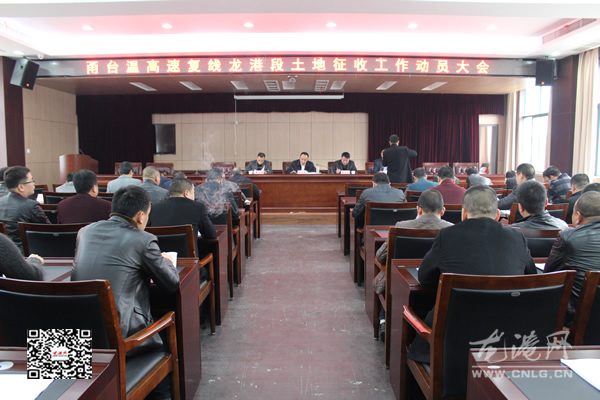 龙港网3月24日讯:甬台温高速复线苍南段是省重点工程,其中龙港段全长近14公里。为了全力推进工程建设,今天下午,甬台温高速公路龙港段召开土地征收工作动员大会。镇长陈为来做动员讲话,苍南段副指挥黄建华、镇领导黄义耀、黄传朴及龙港沿线各社区、村居干部参加动员会。