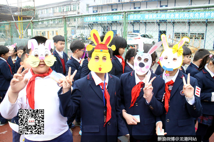 龙港网4月8日简讯:今天上午,龙港一小校园内响起欢快的兔子舞音乐旋律,一年一度的英语节就此拉开序幕!全校千名学生面带各式各样兔子面具,随着音乐节拍,步伐轻快、整齐划一、动感十足,尽显青春与活力。