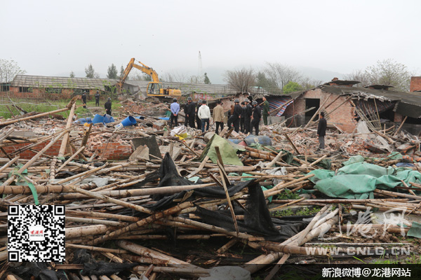 龙港网4月15日讯:昨天上午,龙港镇组织国土、住建、两违、电力等多部门,对我镇新美洲村鳌江五桥建设周边多处违章建筑进行强制拆除。