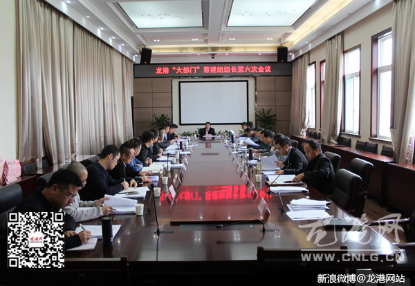 龙港网4月19日讯:昨天下午,龙港镇召开“大部门”筹建组组长第六次会议,县镇领导苏庆明、丁振俊、陈为来、李孝取等领导参加会议。