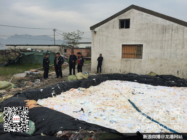 龙港网4月21日讯:今天凌晨,龙港镇环保分局联合江山社区在寿山村捣毁一废布角料褪色加工点,收缴废布角料1.5吨,有力地遏制褪色加工死灰复燃。