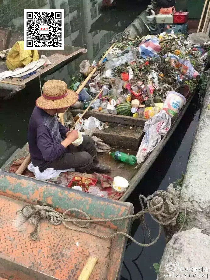 龙港网4月22日讯:[不让垃圾随波逐流 在垃圾堆里吃饭让人感到心酸] 河道清洁工,一个不起眼的岗位。一直战斗在龙港各条河道上的城市美容师,他们就这样每天在河道上默默奉献着,为建设美丽龙港,创建干净整洁的河道环境而辛苦劳作着,一天又一天,无怨无悔,他们的身影是龙港这座即将“镇改市”的一道美丽风景线。正是有了他们的默默奉献,我们的河道才变得如此美丽和干净。