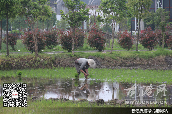龙港网4月28日讯:昨天下午,天空中下着蒙蒙细雨,但在龙港田间地头,仍然有不少农户在忙碌着,他们正在抓紧做好今年早稻秧苗插种工作,农田间呈现出一幅繁忙的春耕景象。请看报道。