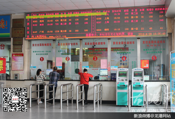 龙港网5月4日讯:“您好,现在汽车票是实名制购票,请出示您的身份证。”在龙港汽车客运站中心的购票窗口处,一位售票员仔细地跟买票者说着。