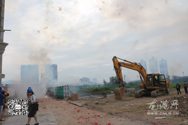 龙港网5月18日讯:今天上午,龙华大厦在挖掘机轰鸣声与鞭炮声中举行了开工仪式。副镇长林大阔以及河底高村两委、设计单位、施工单位等负责人参加开工仪式。
