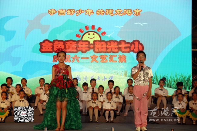 龙港网6月1日讯:为进一步助推“争当好少年,共建龙港市”系列活动,努力营造阳光向上、健康文明的校园文化,充分展现七小学子艺术风采,经过全体七小人一个多月的精心准备,昨天晚上,龙港七小举行了两场盛大而隆重的 “金色童年·阳光七小”庆“六一”文艺晚会。校家委会副主任夏天先生及该校学生陈越、魏千、卢若萱、颜扬亨、陈思棋担任晚会的主持。校长钟捷向晚会致辞。龙港学区主任王大爱、副主任孔爱月以及各兄弟学校校长、龙港电视台、龙港网记者等同志参加了本次活动。