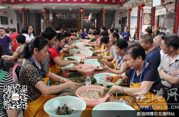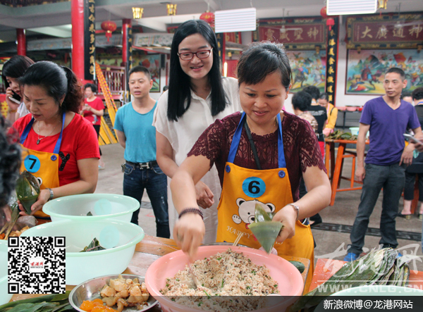 龙港网6月8日讯:“加油,加油,再包一个粽子。”今天上午,龙港河底高村在村文化礼堂内举办了“一只青粽,一缕浓情,共度端午”包粽子友谊赛,有40多名包粽子能手参与比拼,一展才艺,现场气氛活跃。镇委委员方小卫到场观赛。