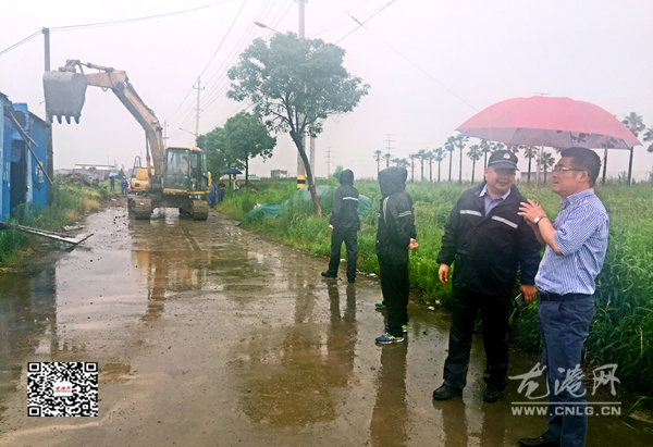 镇委副书记丁云勇冒雨现场指导“四边三化”整治工作