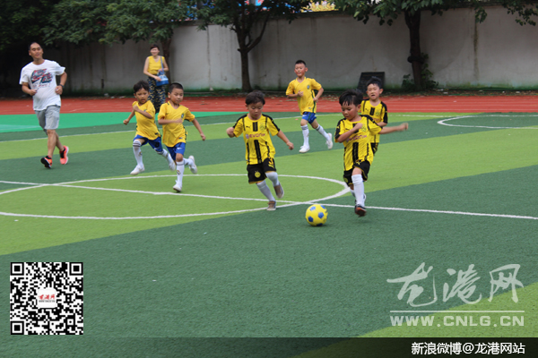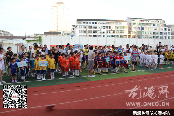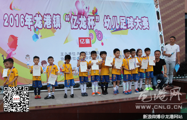龙港网7月4日讯:昨天,由龙港镇团委主办,体育联合会协办的龙港镇首届“亿龙杯”幼儿足球大赛在五小举行,此次活动共举行两天,共有8个幼儿园带队参赛,龙港五幼战胜巴曹幼儿园获得了这次比赛的第一名。龙港镇团委书记陈建锚为他们颁奖。