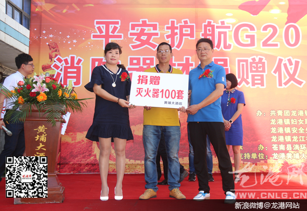 龙港网7月8日讯:以往在大家的印象里,酒店店庆活动免不了敲锣打鼓热闹一番,而位于龙港东城路的黄埔大酒店却换了一种方式来庆祝。今天上午,该酒店用原本打算用于店庆开支的费用为龙江社区捐赠了100套灭火器材。龙港镇团委、妇联、安监局和县消环公益服务中心等相关负责人纷纷到场,为酒店服务公益行为点赞。