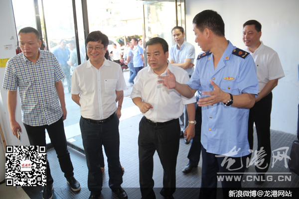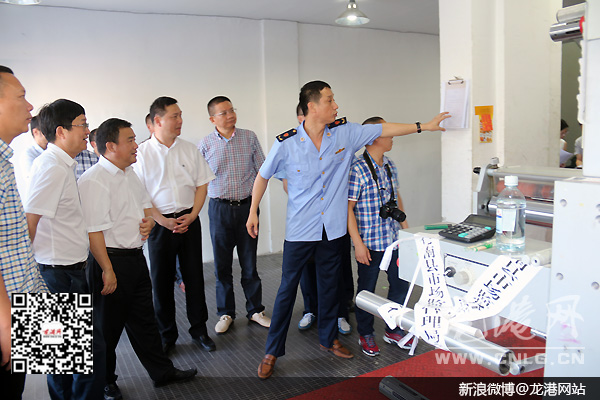 龙港网7月10日讯:日前,县长黄荣定到龙港督查假冒伪劣标识省级挂牌“百日攻坚”专项整治时强调,各职能部门和龙港镇要保持态势,咬定目标一抓到底,抓紧抓实抓好专项督查整治工作,坚决打赢假冒伪劣标识“百日攻坚”战。县镇领导林小同、陈为来、朱文胜陪同。