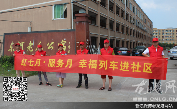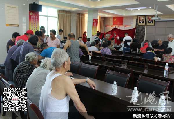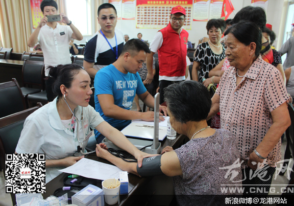 龙港网7月14日讯:红七月,服务月。今天下午,由龙港镇组织人事局、团委、妇联、博德公益组织联合开展的“红心号”幸福列车开进了湖前社区东河村老人公寓,给老人们进行免费义诊活动。