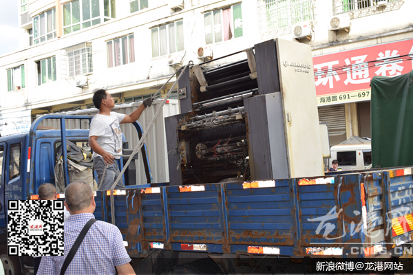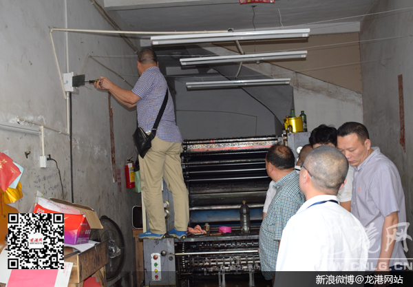 龙港网7月15日讯:日前,苍南县文化市场行政执法大队联合龙港镇,依法取缔了海港路一无证无照印刷作坊,切实维护了印刷市场正常的经营秩序。县文广新局局长李晖华,镇委委员、副镇长朱文胜参与执法行动。