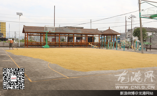 龙港网7月15日讯:早稻收割正在如火如荼的开展着,但是收好的稻谷不及时烘干极易发芽霉烂。而近几日连续的晴好天气,让不少农户不亦乐乎,忙把收割好的稻谷放到空地上进行晾晒。