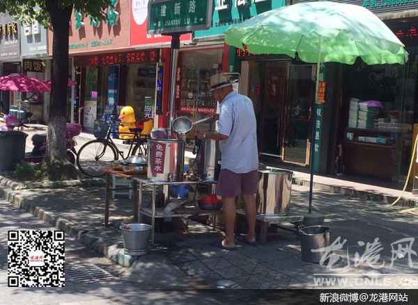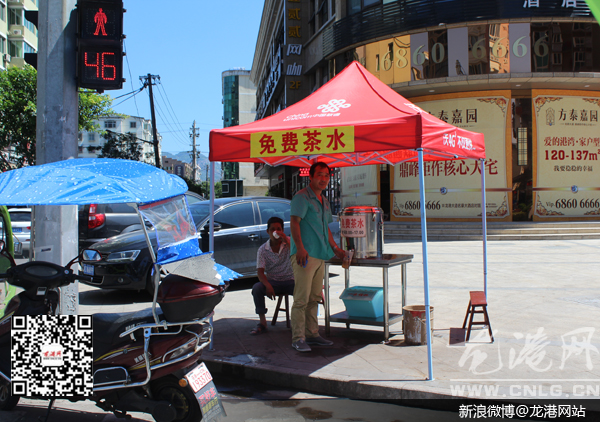 龙港网7月15日讯: 炎炎夏日,一杯消暑的茶水是最为贴心的关怀,最为温暖的关心。每每一到烈日高照的炎夏,龙港各街头就会自发涌现出一个个免费凉茶摊点,给往来的路人供上一杯凉茶,带去丝丝凉意。这俨然成了夏日里一道靓丽的风景线。