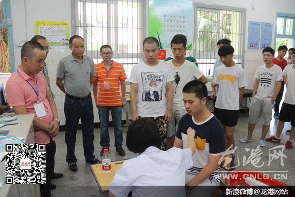 龙港网7月15日讯:昨天下午,镇长陈为来到龙港五小征兵初检点,看望参与初检的医务工作者,了解各社区报名应征的适龄青年体格状况。镇委委员、镇人武部部长蔡开义陪同。