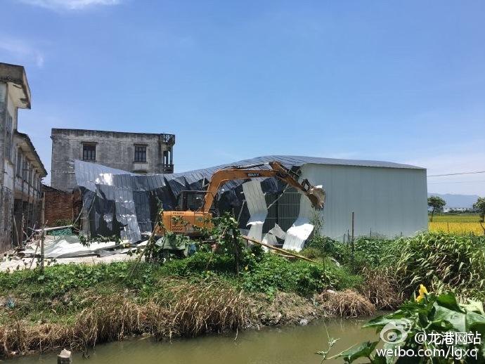 龙港网7月16日讯:近日,龙港镇国土资源与城乡规划建设局在日常监察巡逻中发现平等社区施良村一处新增抢建违法钢棚300平方米,国土部门立即会同镇两违办组织联合执法队伍,趁午休时间对该违法建筑物进行了强制拆除。