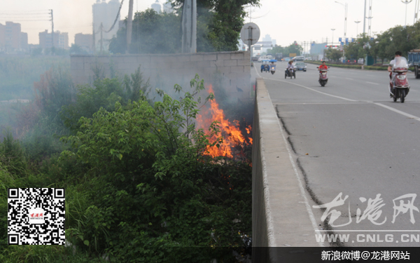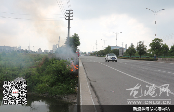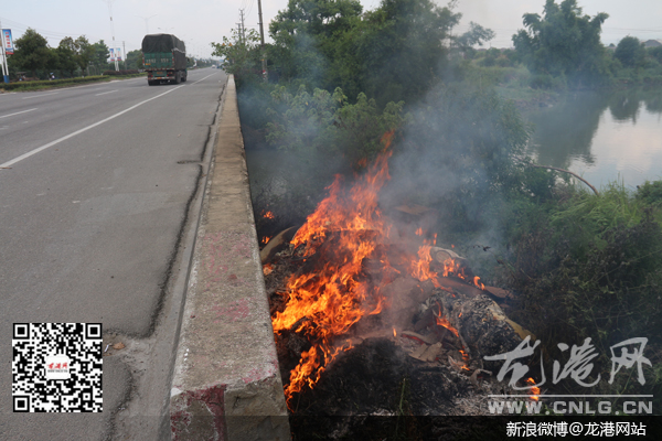 龙港网7月31日讯:今天上午,本网24小时热线68099777接到投诉称:在世纪大道九龙湾公园的桥头下,有人在故意焚烧垃圾,黑烟弥漫,散发的气味令人难以呼吸。随即,记者立即赶往现场。