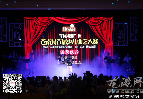 龙港网8月8日讯:日前,“开心茶谈”杯苍南县首届少儿曲艺大赛举行颁奖典礼,组委会分别颁出入围奖、优秀表演奖、优秀组织奖、“小铜鹿”、“小银鹿”、“小金鹿”等奖项,成绩优异者将有幸代表我县参加第16届市少儿文艺大奖赛。