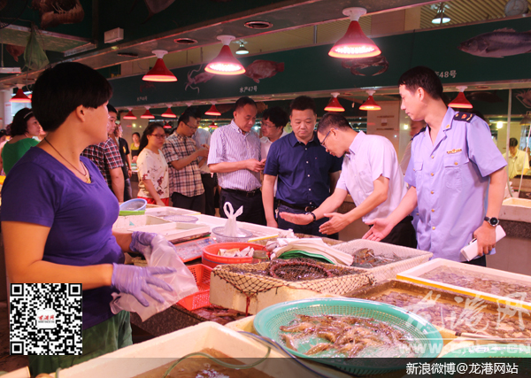 在调研过程中,苗伟伦一行首先实地察看了龙港新渡菜市场改造提升情况,现场听取市监部门负责人就菜市场推行长效管理机制和“五看、六统一”管理标准的整体思路,及市场的全区提升改造等情况汇报。他指出,农贸市场是方便群众、服务百姓的重要载体,也是政府基层管理便民为民办实事的重要组成部分,更是直接体现和影响城市精细化管理水平的重要指标,各相关单位要把农贸市场打造成便民、安全和群众满意的购物场所。