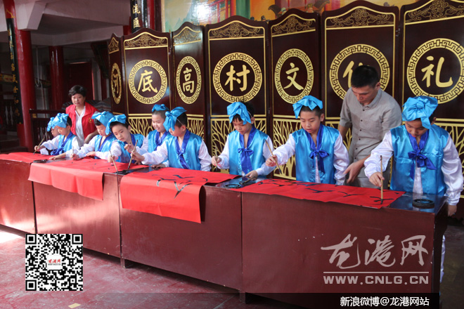 龙港网9月5日讯:昨天上午,一场中国传统的启蒙开笔礼在龙港镇河底高村文化礼堂举行。镇委委员方小卫,社区及相关部门负责人参加活动。