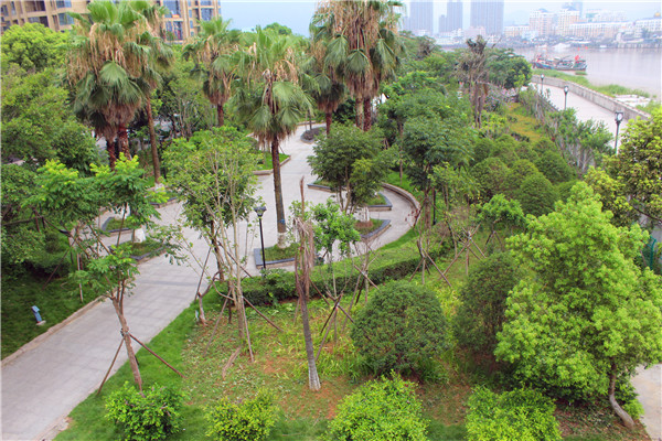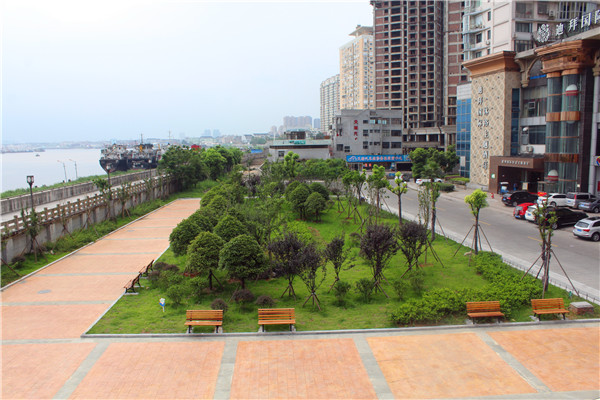 沿江绿化休闲带从龙港大桥到江滨路海塘纪念馆,全长4公里。沿江绿化带景观工程改造是对原有绿化带进行改造提升,增加绿化覆盖率,完善绿化带休闲、娱乐、健身等功能,一期投资1400多万元。 目前,该绿化带大部分都已完工,现在,走在沿江绿化带上,就可发现道路两旁绿化带增添了很多树种,花台整治,行道树修枝整形等,种种措施都全面提升了整体绿化景观,让市民看到了常绿与落叶搭配、春花与秋叶交替,绿化后的沿江休闲带“颜值”大幅提升。为市民提供了又一休闲的好去处,得到市民的一致称赞。