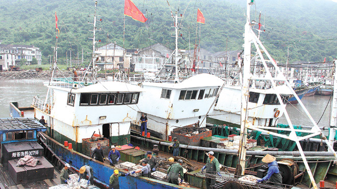 龙港网9月14日讯:15日前后时至天文大潮,受14号台风“莫兰蒂”和15号、16号热带风暴“雷伊”“马肋卡”的影响,海上大风大浪,渔船纷纷归港避风。笔者在龙港舥艚码头看到,一排排渔船整齐停靠,渔船民正在卸货,转移物资,加固缆绳,撤离人员,防风措施第一时间落实到位。(周元斌/摄)