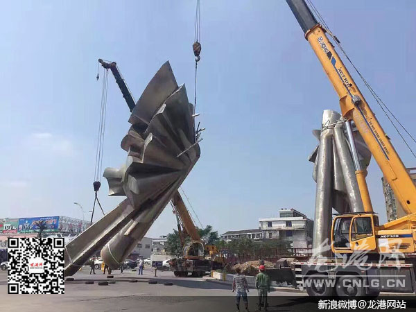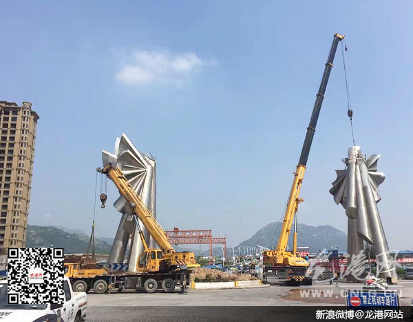 龙港网9月21日讯:龙港大桥改建工程引桥部分建设即将拉开,今天上午,龙港镇国土规建局组织人员对项目政策拆迁范围内的大桥南端城市景观雕塑标志进行迁移。该雕塑标志将暂时搬至原大桥周边闲置地,待日后大桥改建完成后,永久安放在修复后的大桥公园。