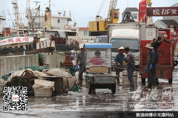 在舥艚渔港,很多渔船早早就驶入避风。码头上,渔民们忙碌着运输渔货上岸。船老大们告诉记者,昨天开始,一些渔船已经回到舥艚港靠岸避风了。随着第17号台风“鲇鱼”生成,未来几天,浙南海域将迎来狂风暴雨天气。为确保海上安全,这两天,很多渔船不得不紧急归航避风。