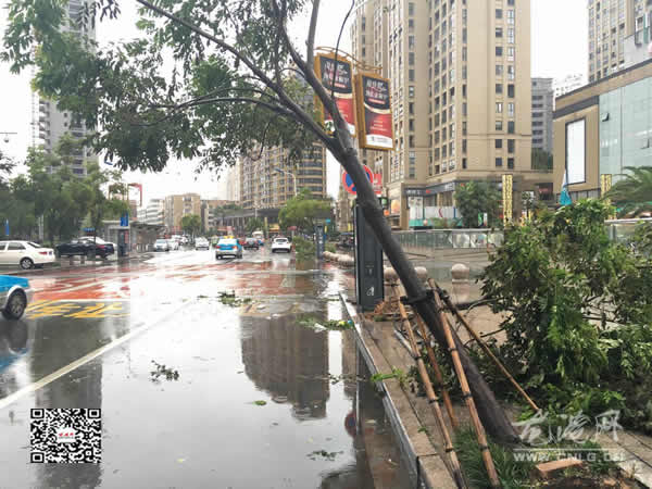 龙港网9月28日讯:今年第17号台风“鲇鱼”于今天4时40分在泉州惠安沿海登陆,登陆时中心附近最大风力12级(33米/秒,台风级),中心最低气压975百帕。受台风“鲇鱼”外围影响,龙港镇不少道路两旁的树木被风吹倒,严重影响过往车辆的安全。龙港镇上下迅速行动,全面开展灾后处理相关工作。