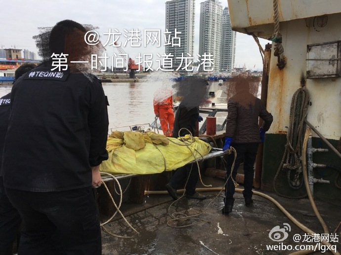 龙港网12月3日讯:昨天,平阳渔民钱老大驾驶浙平渔80**2号铁质渔船到北纬26度公海边海域捕鱼时发现一具浮尸,立即将其捞起来,用冰块和棉被将其冷藏,并向平阳县渔洋与渔业执法大队、鳌江边防派出所通报此事。经请示后,钱老大立即调头驶回鳌江港,经过十个小时连续行驶,今天上午10点许抵达鳌江瓯南大桥,因潮水正在涨潮中,该渔船桅杆过高,无法驶过瓯南大桥,停靠渔政码头,只好在大桥下游100米处抛锚等候救助。鳌江边防派出所一警官立即向苍南县东海民防救援中心(简称“东海民防”)请求出动救助。东海民防机动大队立即出动东海民防168艇、冲锋舟和4名机动队员在边防警官、渔政执法人员和渔民兄弟配合下,将韩国渔民遗体从渔船抬到冲锋舟上,再用168艇拖到平阳渔政码头,边防警官将其抬上岸移送殡仪馆暂时保管。