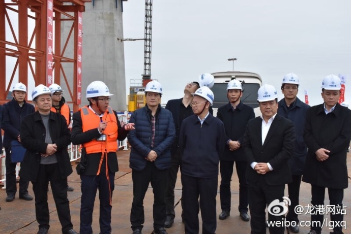 刘力伟一行实地察看了龙港新城、龙港体育馆、甬台温高速复线鳌江特大桥等项目工程建设情况。据了解,高速复线工程鳌江特大桥项目全长2083米,总投资约9.33亿。2015年8月12日,鳌江特大桥作为先期段先行开工,进展顺利,目前已完成工程量50%,大桥建成后将全力推进温州南部城市交通更加便捷快速。刘力伟祥细询问工程实施情况、形象进度、存在困难问题以及下步工作措施,要求施工单位要全力抓好工程进度和质量,当地政府部门要全力保障工程建设。