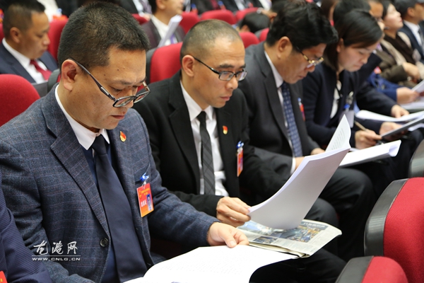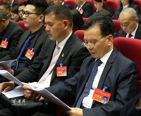 代表认真听取人大工作报告
