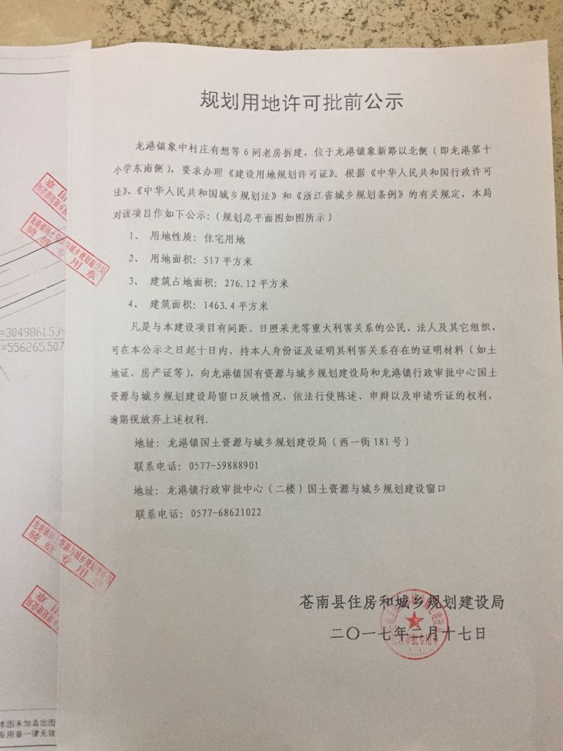 龙港镇象中村庄有想6间老房拆建的公示