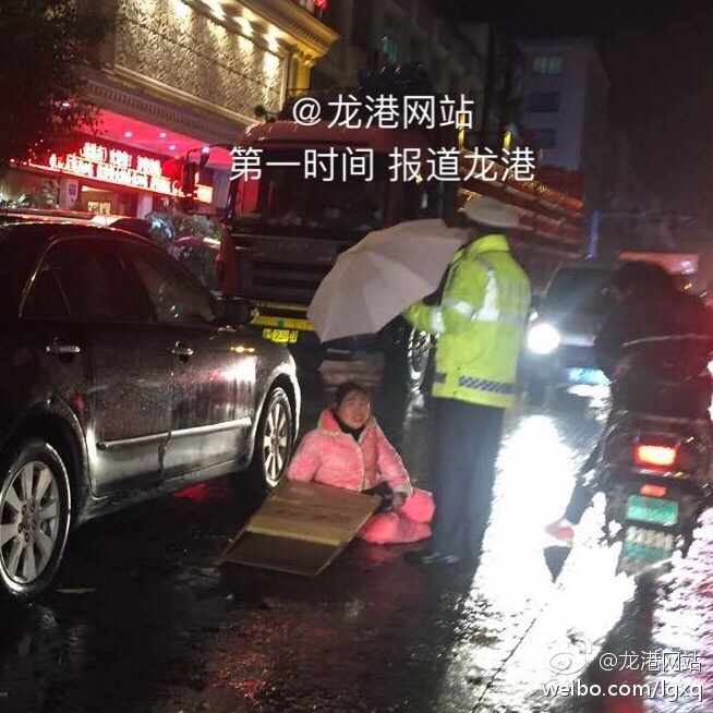 下雨天一女子被车撞伤 龙港交协警为其撑伞半小时