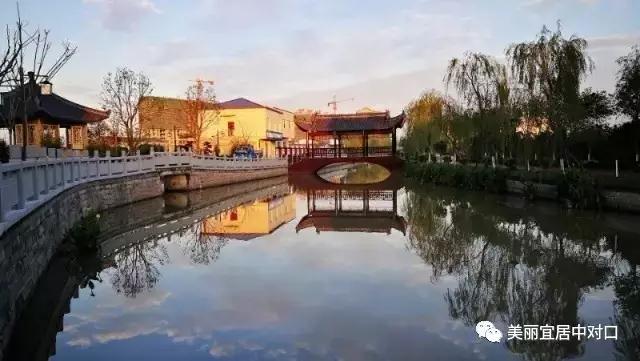 中对口村目前已建成农房集聚小区、老人公益区、生态公益园、村民中心、村卫生室、文化礼堂、运动场馆等设施场馆,打造出生态河道贯通、游步道穿行、亭台楼阁和绿树红花相映的生态宜居花园式美丽乡村。