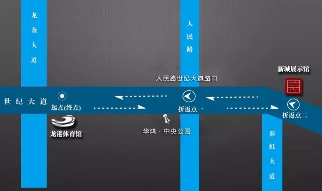 龙港体育馆→→世纪大道→→龙港新城规划展示馆折返点→(原路折返)→龙港体育馆(全程约14.6KM)(适合经常参加体育锻炼人士参加)