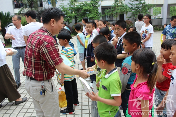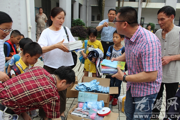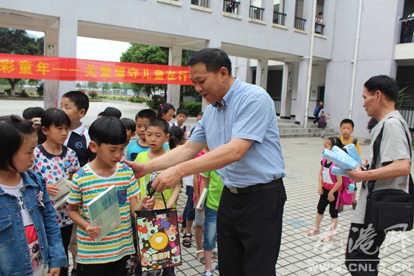 龙港网5月31日讯:在“六一”国际儿童节即将来临之际,5月31日,龙港镇副镇级组织员吴绍周、关工委、妇联、团委到云岩学校看望慰问了留守儿童,给每人赠送图书、文具等学习用品,为他们送去节日的祝福。