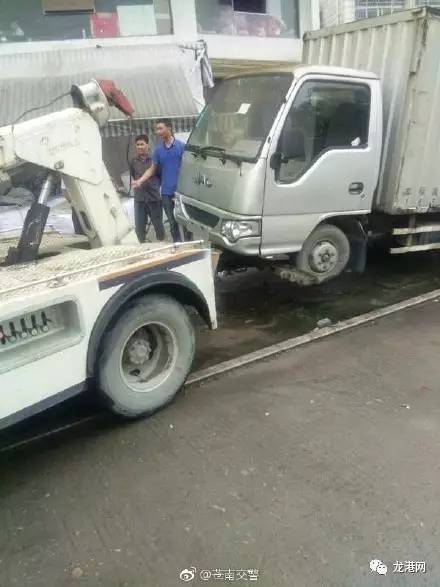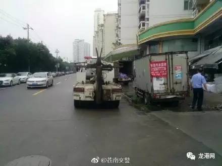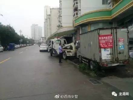 苍南交警大队龙港交警队接群众举报发现一起长期占道的僵尸车,迅速出动,对占道僵尸车进行拖移。