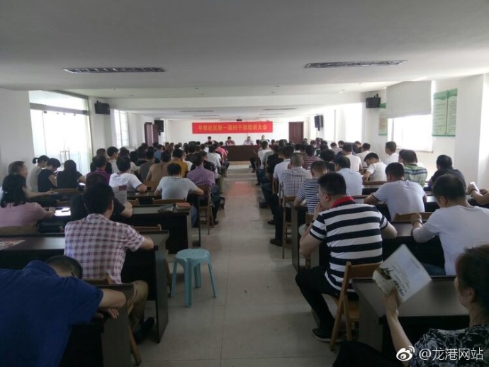 龙港网6月6日讯:今天下午2时,龙港镇平等社区五楼会议室召开新一届村干部培训大会,各村两委干部,社区机关干部160余人参加。镇委委员黄钦放莅临会场并指导工作。