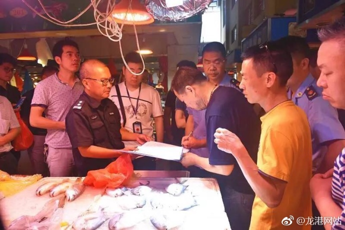 5月1日起,龙港市监分局联合龙港电视台、龙港网、龙港市监微信公众号等多个平台进行专题报道,对禁渔期期间禁止在农贸市场、超市、临时摊点等各类市场和饭店、大排档等餐饮场所销售带鱼、大黄鱼、小黄鱼、银鲳、鲐鱼、三疣梭子蟹、龙头鱼、虾蛄等八种海洋捕捞冰鲜或者活体水产品进行宣传。同时,在执法的过程中,向农贸市场水产品经营户、大型餐饮单位及消费者发放《关于加强海洋幼鱼资源保护促进浙江渔场修复振兴的决定》、《多大的鱼儿不能捕、不能卖》等宣传单,呼吁经营户、消费者共同保护幼鱼资源,抵制销售、购买、食用违禁鱼等行为。