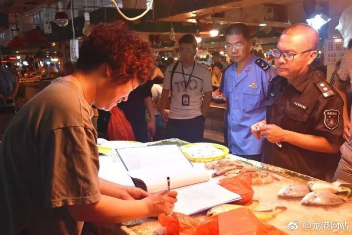 禁渔期已实行一个多月,在这一个月的时间内,龙港市场监管部门在县市监局、龙港镇政府的组织下,联合海洋渔业部门多次开展“一打三整治”行动,截止5月底,共开展联合行动9次,出动执法人数238人次,查获违禁渔获物250.5斤。为了巩固前期整治成果,保持良好的“一打三整治”工作态势,6月7日上午,龙港市监分局联合海洋渔业局,对辖区农贸市场、大型餐饮单位开展“一打三整治”工作“回头看”。