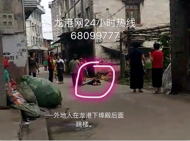 龙港网6月9日讯:今天下午2点30分,龙港网24小时热线68099777接到热心网友“丹妮”报料:有人在龙港镇下埠殿后面老人公寓前民房上跳楼,现已躺在地下;吓得周边老人,忘记了报警。
